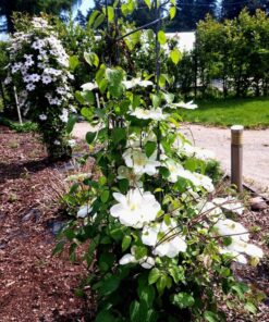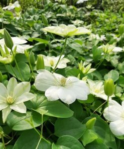 Kwiaty duże, śr. 12-15 cm, początkowo jasnożółte, a po rozwinięciu bielejące, z zielonkawym pasem pośrodku; składają się z 8 nachodzących na siebie działek. Pręciki mają żółte pylniki na białych nitkach. Liście zazwyczaj złożone, trójlistkowe. Pnącze wspina się za pomocą ogonków liściowych.