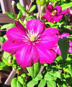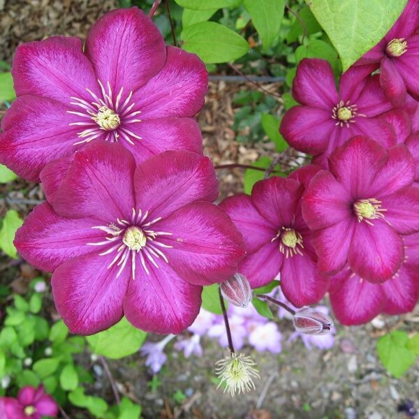Pielęgnacja: Powojnik sadzić 5cm głębiej niż rósł w doniczce i co najmniej 30 cm od innych roślin lub ścian. Ziemię dookoła sadzonki wyściólkować korą. Podstawę zacieniować np. niskimi krzewinkami, a przed zimą obsypać korą do wysokości 10-20 cm. Najlepiej rośnie na glebach żyznych, próchnicznych, zasobnych w wapń (PH 6-7) i przewiewnych. Od kwietnia nawozić, a w okresie wegetacji intensywnie podlewać.