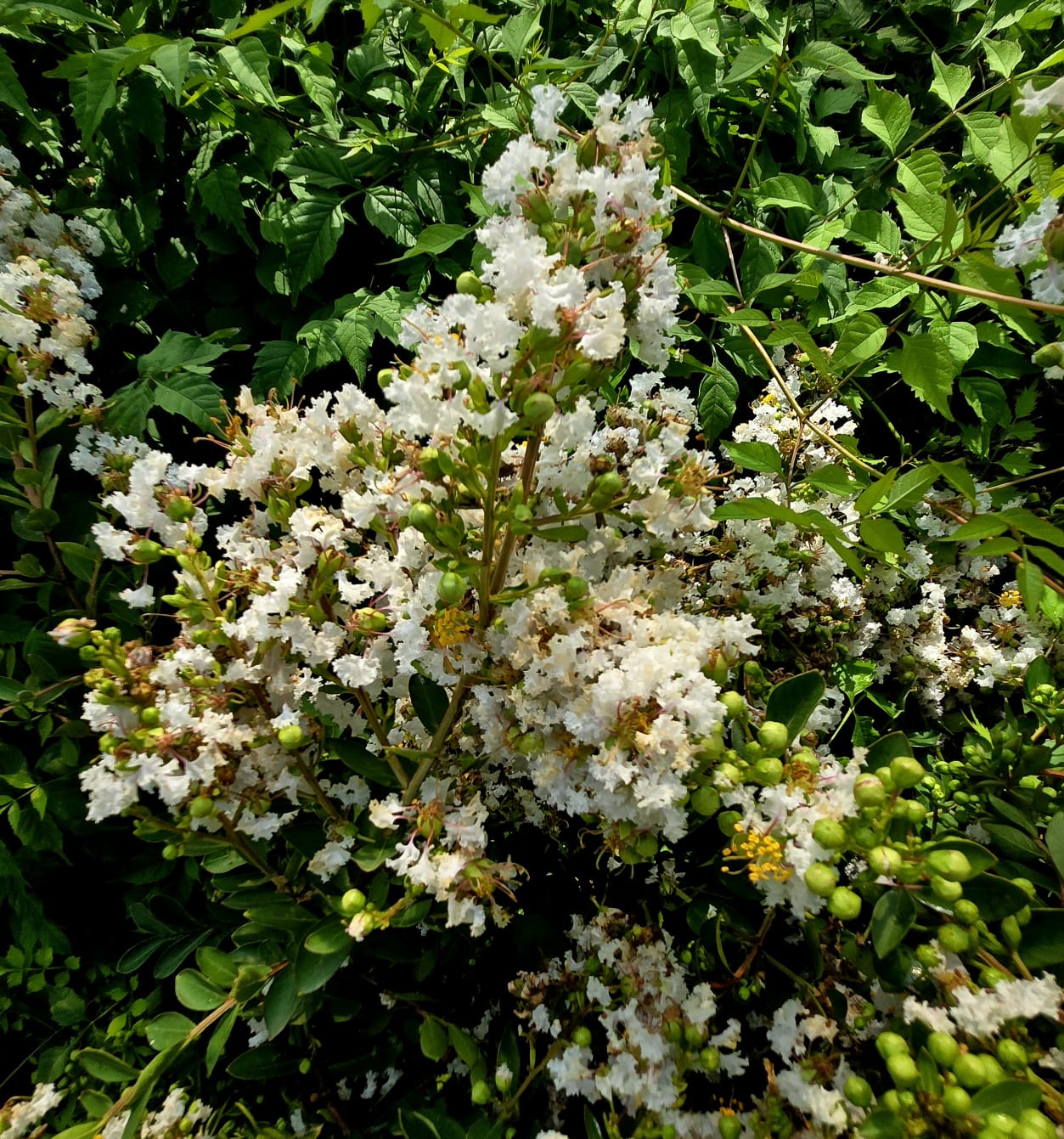 Kwiaty utrzymują się na drzewach przez trzy-cztery miesiące. W naszym klimacie kwitnie dopiero pod koniec lata, co jest niezwykle imponujące jak na krzewy.