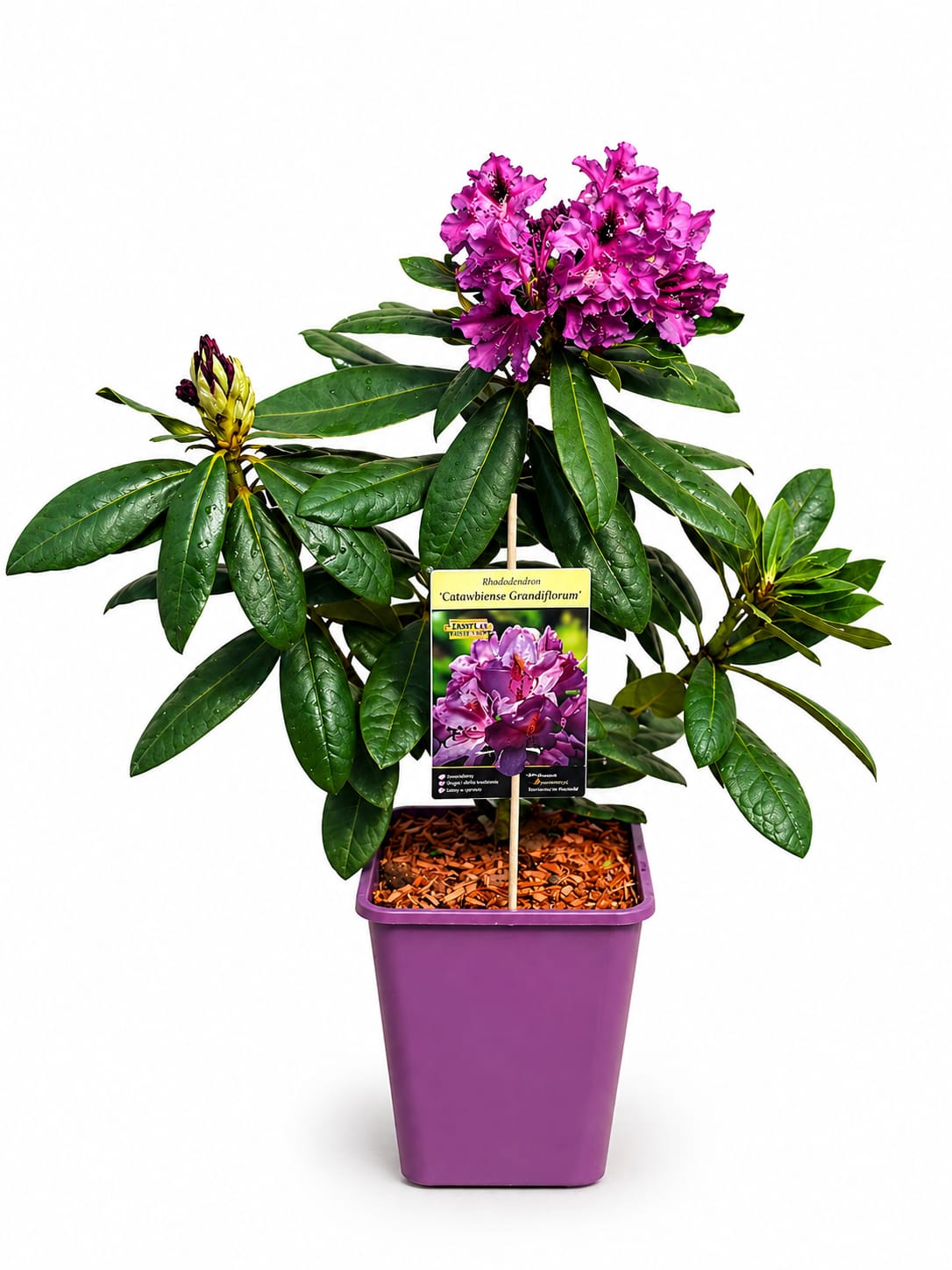 Różanecznik Catawbiense Grandiflorum to klasyczna, niezwykle efektowna odmiana o dużych, jasnofioletowych kwiatach z charakterystycznym rysunkiem na płatkach. Kwitnie obficie od końca maja do połowy czerwca, tworząc gęste, kuliste kwiatostany. Roślina odporna na mrozy, idealna do parków, ogrodów i nasadzeń naturalistycznych.