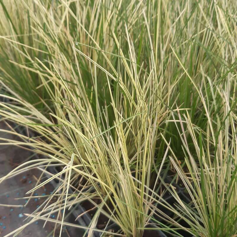 Śmiałek darniowy ‘Northern Lights‘ to dekoracyjna odmiana trawy ozdobnej o wyjątkowym ubarwieniu liści. Zielone blaszki z kremowym paskiem jesienią nabierają subtelnego różowego odcienia, tworząc efektowną, barwną kompozycję. Kwiatostany w kolorze beżowym dodają lekkości, a niski, poduszkowaty pokrój sprawia, że roślina wygląda jak miękki, kolorowy dywan. Dorasta do około 35 cm wysokości.