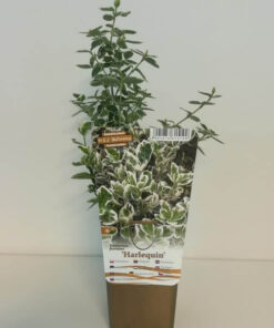 Płożący się krzew dorasta do ok. 0,3m. wysokości i ok. 0,5m szerokości. “Harlequin’ jest zimozielony. Niewątpliwie jego największym walorem ozdobnym są zielone liście nakrapiane bielą.