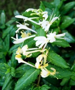 Bardzo oryginalna roślina o niespotykanym dla wiciokrzewów zabarwieniu, początkowo białym, następnie kremowym, a w końcu żółtym. Ma intensywny, przyjemny, zapach. Kwiaty są bardzo subtelne. Piękne, PÓŁZIMOZIELONE, bardzo dekoracyjne liście, w łagodne zimy utrzymujące się na pnączu. Ozdobą pnącza są również kuliste, czarne, niejadalne owoce. Dorasta do 5m (1-2m rocznie). Pędy owijają się wokół podpór.