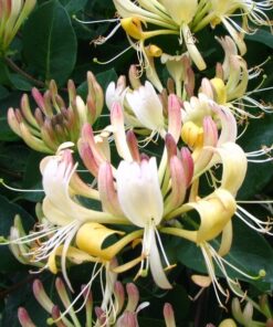 Przepiękne, bardzo popularne, intensywnie pachnące pnącze o ozdobnych kremowych kwiatach i zielonych liściach, w węzłach zrośnięte tworzą jakby talerzyk. Dorasta do 3-6 m (0, 5-1 m rocznie), mało wymagające, odporne i łatwe w uprawie. Wspaniale ozdobi ogród, świetnie prezentuje się również w donicach na balkonie czy tarasie. Bardzo dobrze sprawdza się jako roślina okrywowa. Kwitnie bardzo długo, od czerwca do końca października!!! Nadaje się na stanowiska słoneczne i półcieniste. Roślina z powodzeniem uprawiana w polskiej strefie klimatycznej.