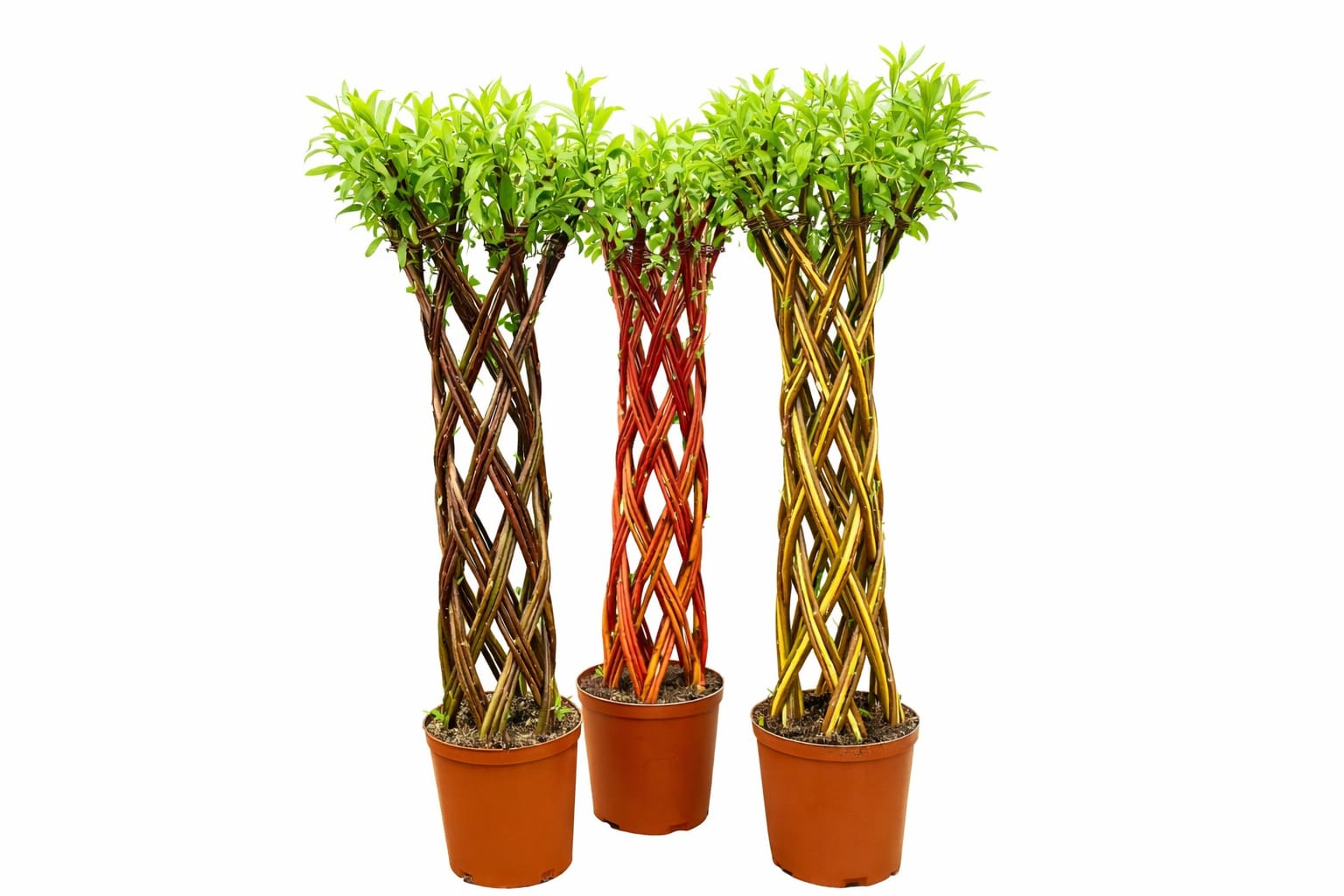 Ta wyjątkowa roślina powstała z ręcznie plecionych pędów wierzby tradycyjnej i wyróżnia się niezwykłą dekoracyjnością. Ozdobna jest nie tylko dzięki swojemu unikatowemu kształtowi, ale także dzięki cienkim, błyszczącym, purpurowym pędom oraz lancetowatym liściom w odcieniach jasno‑ i ciemnozielonym. Wypuszcza pąki, kwiaty („kotki”) i liście bardzo wcześnie, dlatego zdobi ogród już od przedwiośnia. Roślina jest długowieczna, odporna na niskie temperatury i niewymagająca w pielęgnacji. Doskonale sprawdza się zarówno w ogrodzie, jak i w donicach na balkonach czy tarasach.