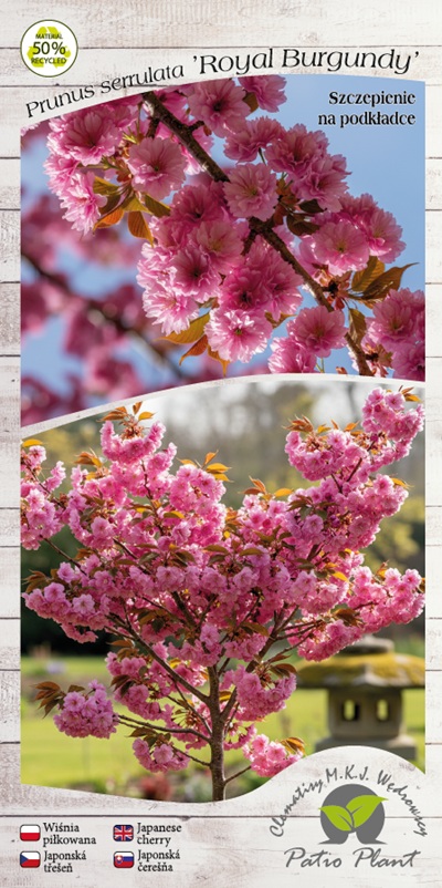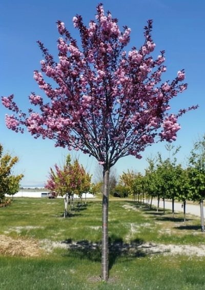 (sadzonka szczepiona) to efektowna odmiana wiśni japońskiej, wyróżniająca się ciemnopurpurowymi liśćmi oraz