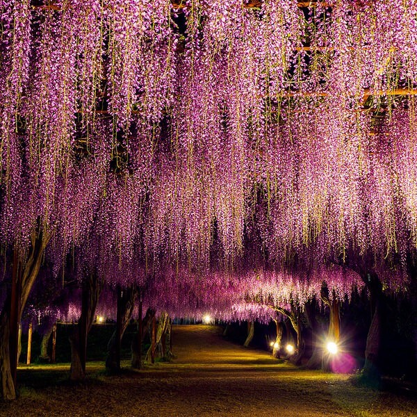 Przepiękne kwitnące pnącze o kwiatach różowych, zebranych w długie grona (do 60 cm) . Glicynia przez 3-4 lata po posadzeniu rośnie wolno i wymaga szczególnie starannej pielęgnacji i osłaniania na zimę. Potem rośnie silnie wytwarzając 1-3 m przyrostu rocznie, osiągając wysokość 10 m i więcej. Pędy owijają się wokół podpór. Korzenie starych egzemplarzy mogą rozrastać się się w promieniu kilkunastu metrów.
