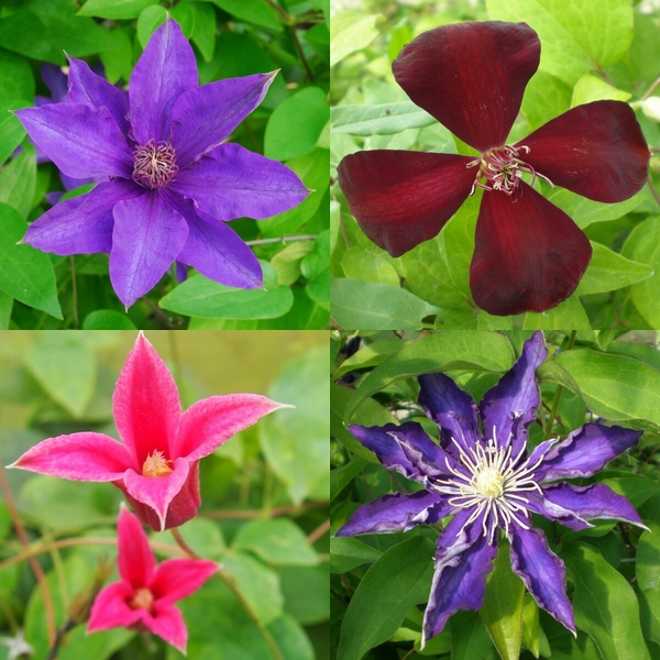 Zestaw zawiera 3 różne, losowo dobrane odmiany Clematisów 2L, które nie posiadają etykiet (brak możliwości oznaczenia poszczególnych roślin).
